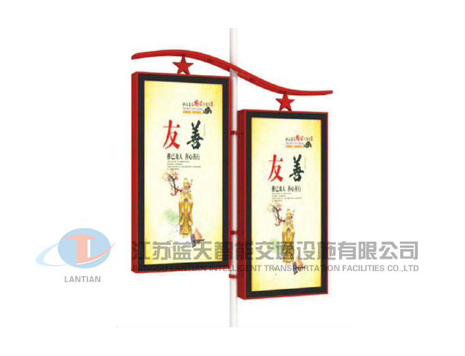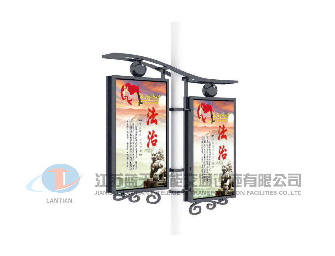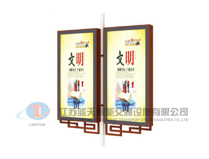 江苏蓝天智能交通设施有限公司是一家生产宣传栏,候车亭,公交站台,阅报栏,指路牌,广告垃圾箱,滚动换画灯箱等系列产品厂家!产品多达上百种,亦可根据客户的需求加工制作各种型号、规格的产品。目前已经成功的向市场推出装备有太阳能的各类产品,紧跟国家倡导“节能低碳”的环保政策。