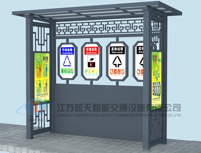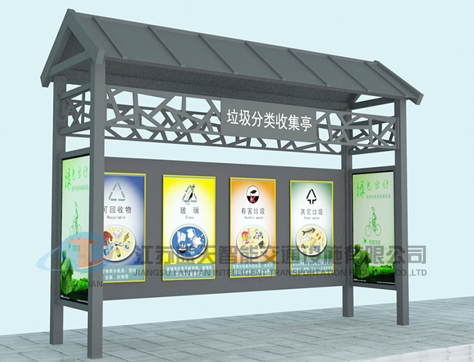 江苏蓝天智能交通设施有限公司是一家生产宣传栏,候车亭,公交站台,阅报栏,指路牌,广告垃圾箱,滚动换画灯箱等系列产品厂家!产品多达上百种,亦可根据客户的需求加工制作各种型号、规格的产品。目前已经成功的向市场推出装备有太阳能的各类产品,紧跟国家倡导“节能低碳”的环保政策。