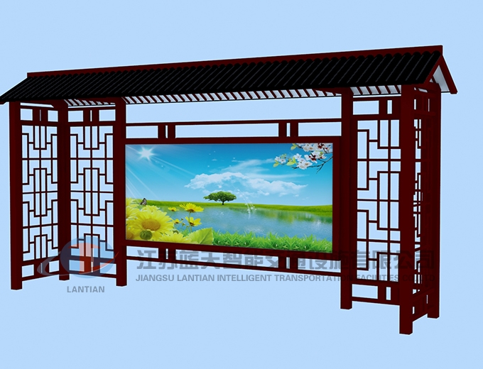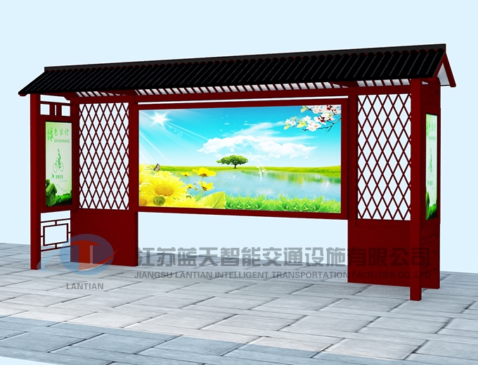 江苏蓝天智能交通设施有限公司是一家生产宣传栏,候车亭,公交站台,阅报栏,指路牌,广告垃圾箱,滚动换画灯箱等系列产品厂家!产品多达上百种,亦可根据客户的需求加工制作各种型号、规格的产品。目前已经成功的向市场推出装备有太阳能的各类产品,紧跟国家倡导“节能低碳”的环保政策。