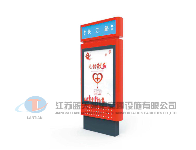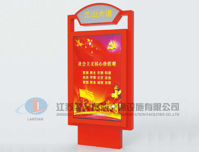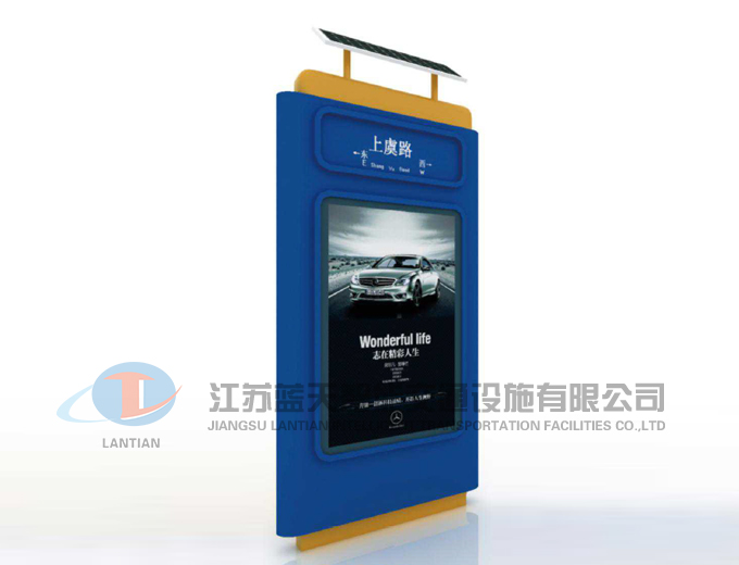 江苏蓝天智能交通设施有限公司是一家生产宣传栏,候车亭,公交站台,阅报栏,指路牌,广告垃圾箱,滚动换画灯箱等系列产品厂家!产品多达上百种,亦可根据客户的需求加工制作各种型号、规格的产品。目前已经成功的向市场推出装备有太阳能的各类产品,紧跟国家倡导“节能低碳”的环保政策。